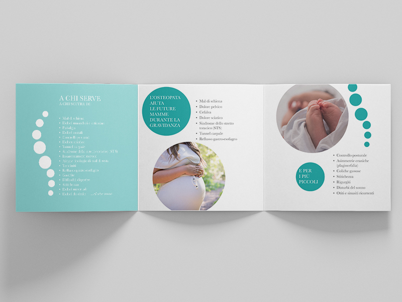 Avendo da poco avviato la propria attività, le risorse economiche erano limitate, quindi le ho creato un piccolo pieghevole riassuntivo delle prestazioni e dei servizi.