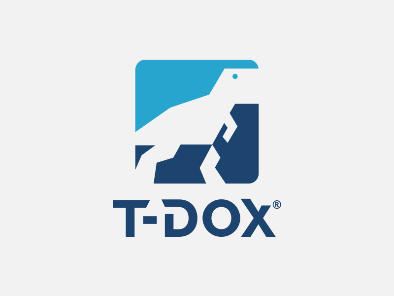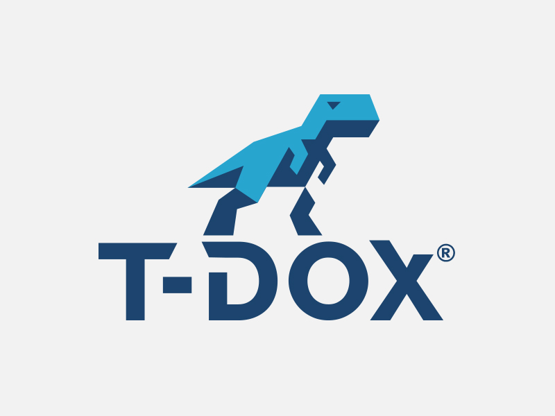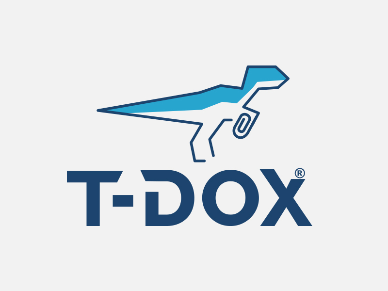 TDox (Tracking Documents) ha una forte assonanza con il mitologico T-REX; per questo, inizialmente, il titolare ha disegnato il logo inserendo un richiamo al Tirannosauro, nello specifico la testa.